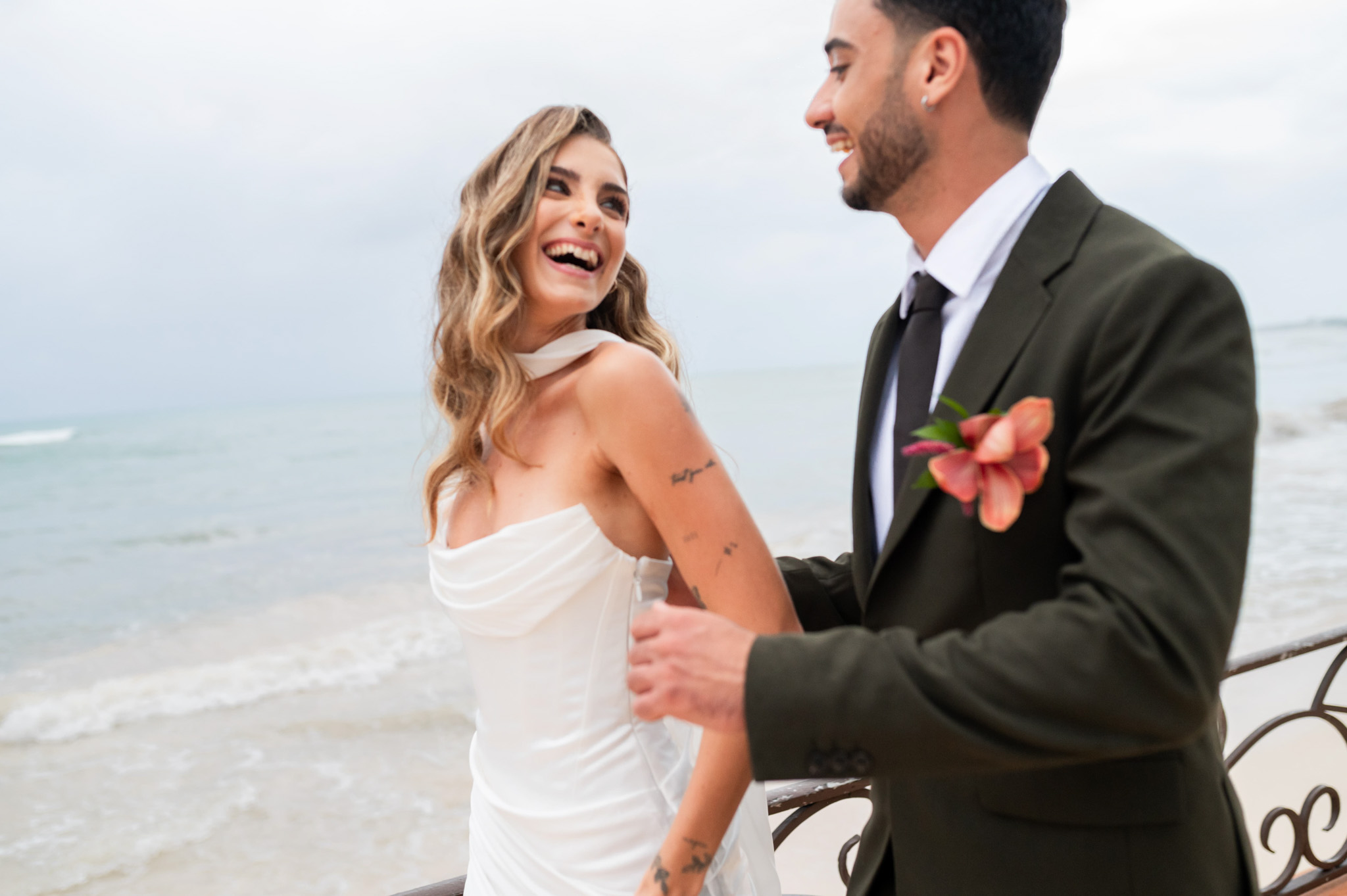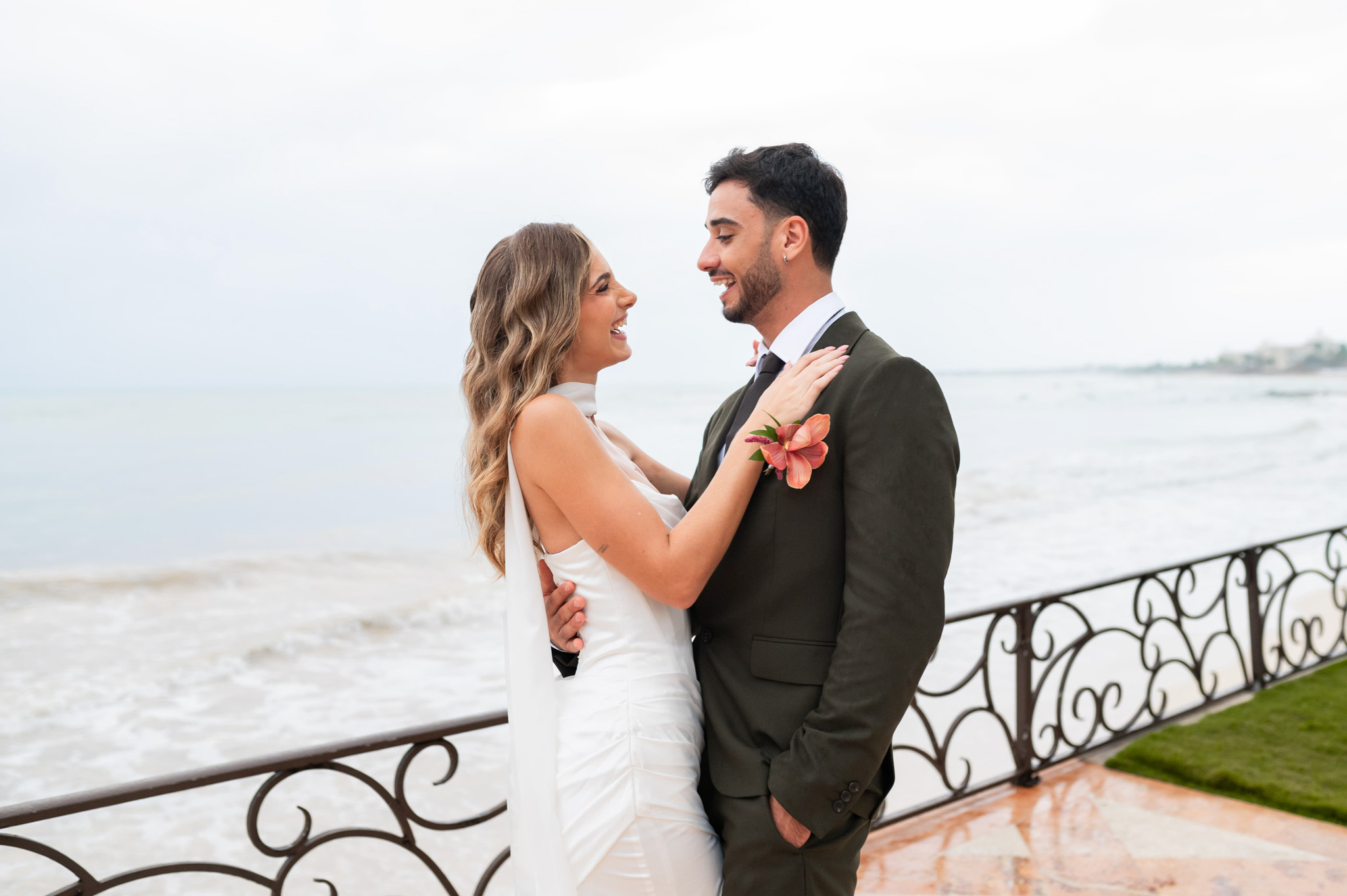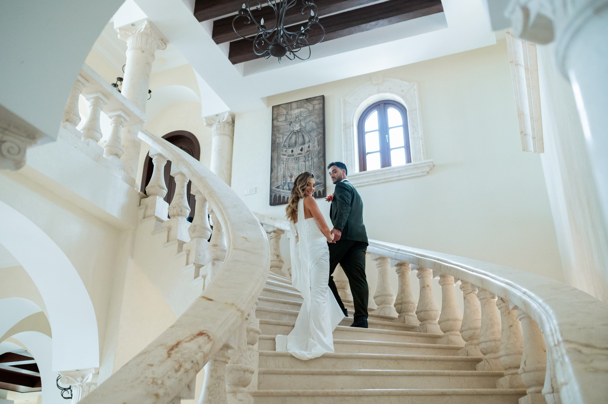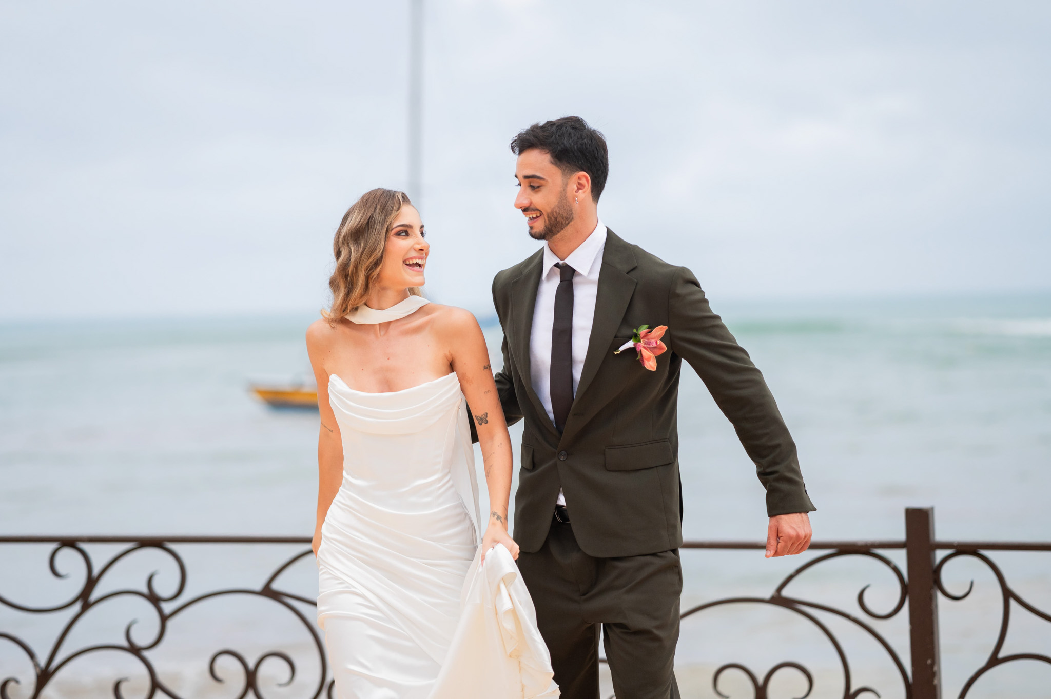 A romantic wedding at Villa La Joya that reimagined the ceremony experience with a timeless, almost Shakespearean twist the couple exchanged vows from the villa's second-story balcony, evoking echoes of Romeo and Juliet but with a joyful ending. Framed by cascading white drapery and overlooking their guests below, they shared their vows softly, privately, while loved ones looked upward in quiet awe. What followed was a celebration that felt like a living sculpture - sculptural florals intertwined with seasonal vegetables, edible still-life centerpieces, flowing linens, and a curated fabric-draped bar. It was wild yet refined, poetic yet grounded a wedding where architecture, intimacy, and artistry met under the coastal sky.
