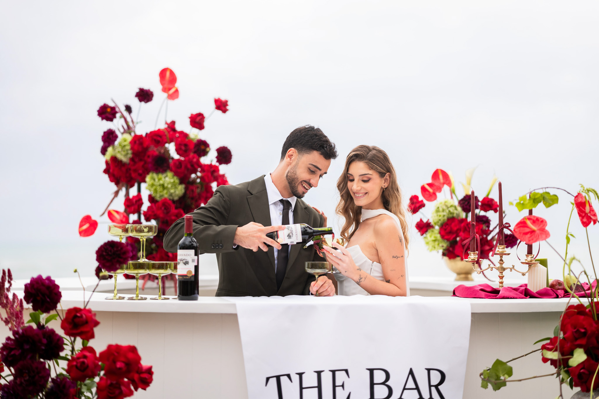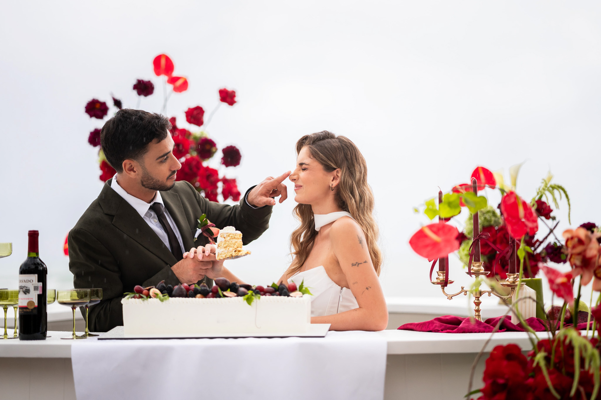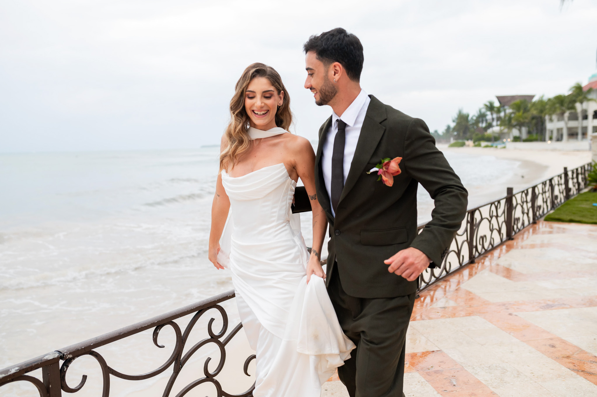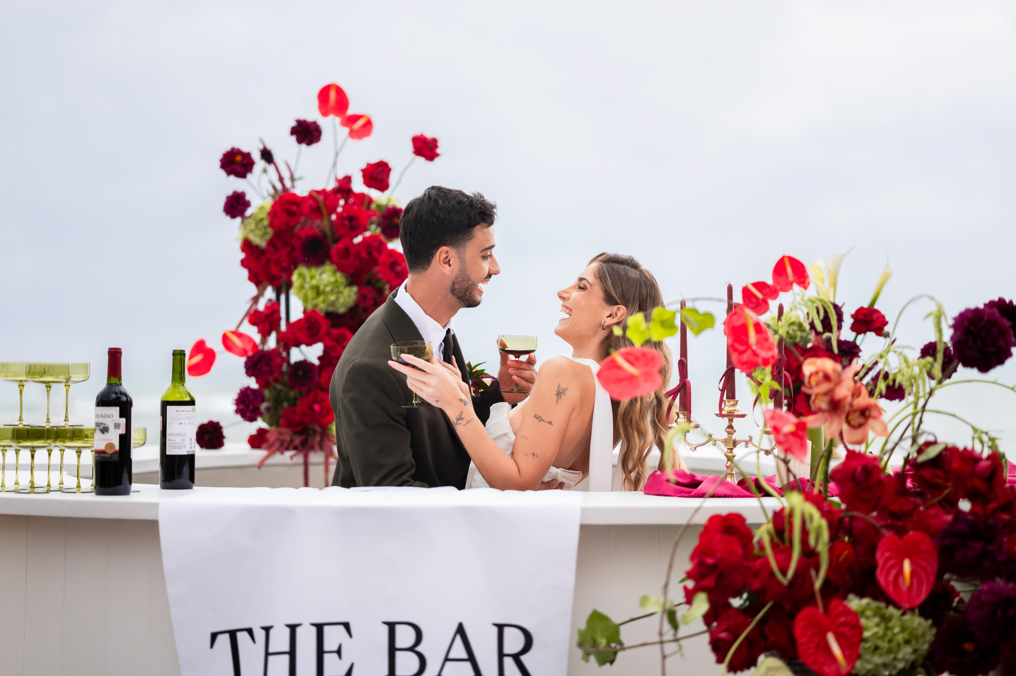 A romantic wedding at Villa La Joya that reimagined the ceremony experience with a timeless, almost Shakespearean twist the couple exchanged vows from the villa's second-story balcony, evoking echoes of Romeo and Juliet but with a joyful ending. Framed by cascading white drapery and overlooking their guests below, they shared their vows softly, privately, while loved ones looked upward in quiet awe. What followed was a celebration that felt like a living sculpture - sculptural florals intertwined with seasonal vegetables, edible still-life centerpieces, flowing linens, and a curated fabric-draped bar. It was wild yet refined, poetic yet grounded a wedding where architecture, intimacy, and artistry met under the coastal sky.