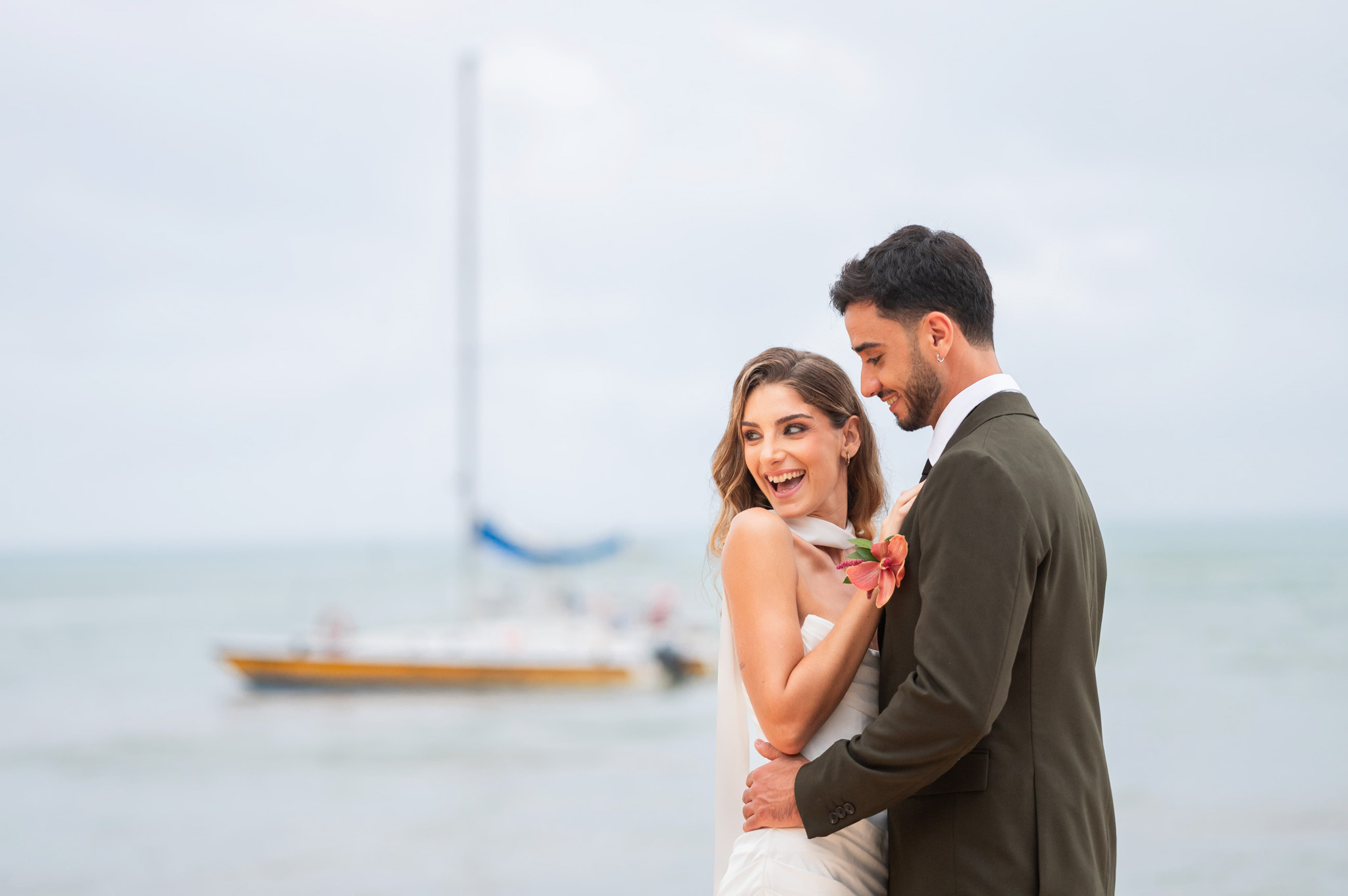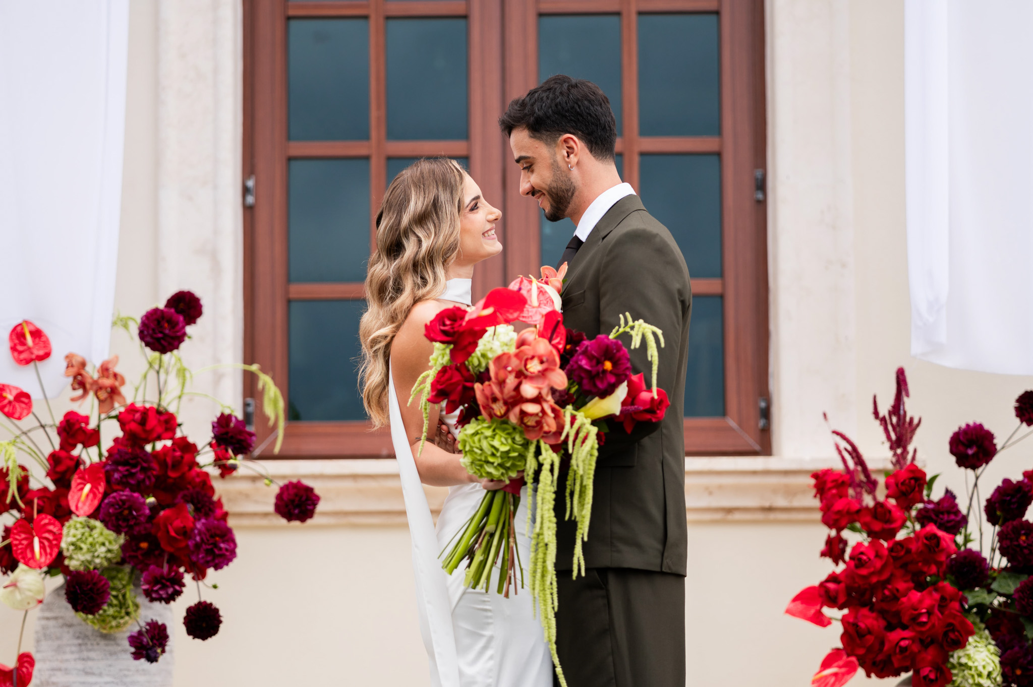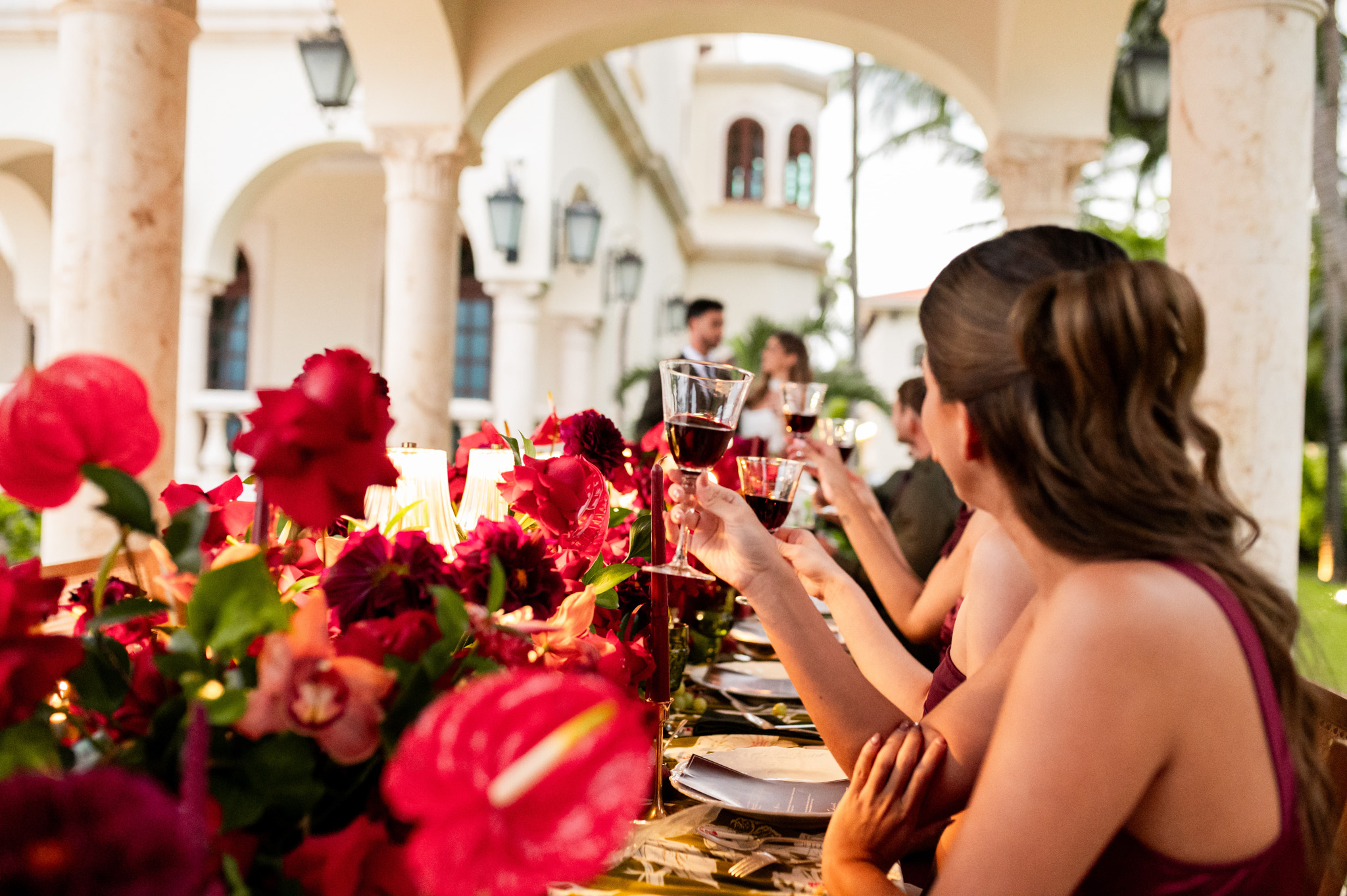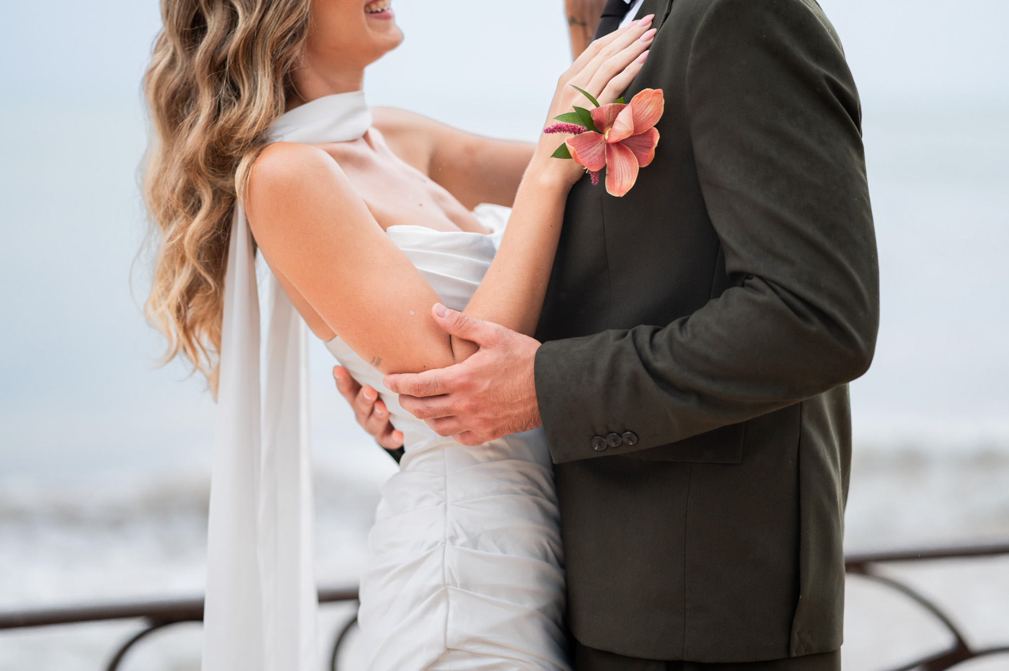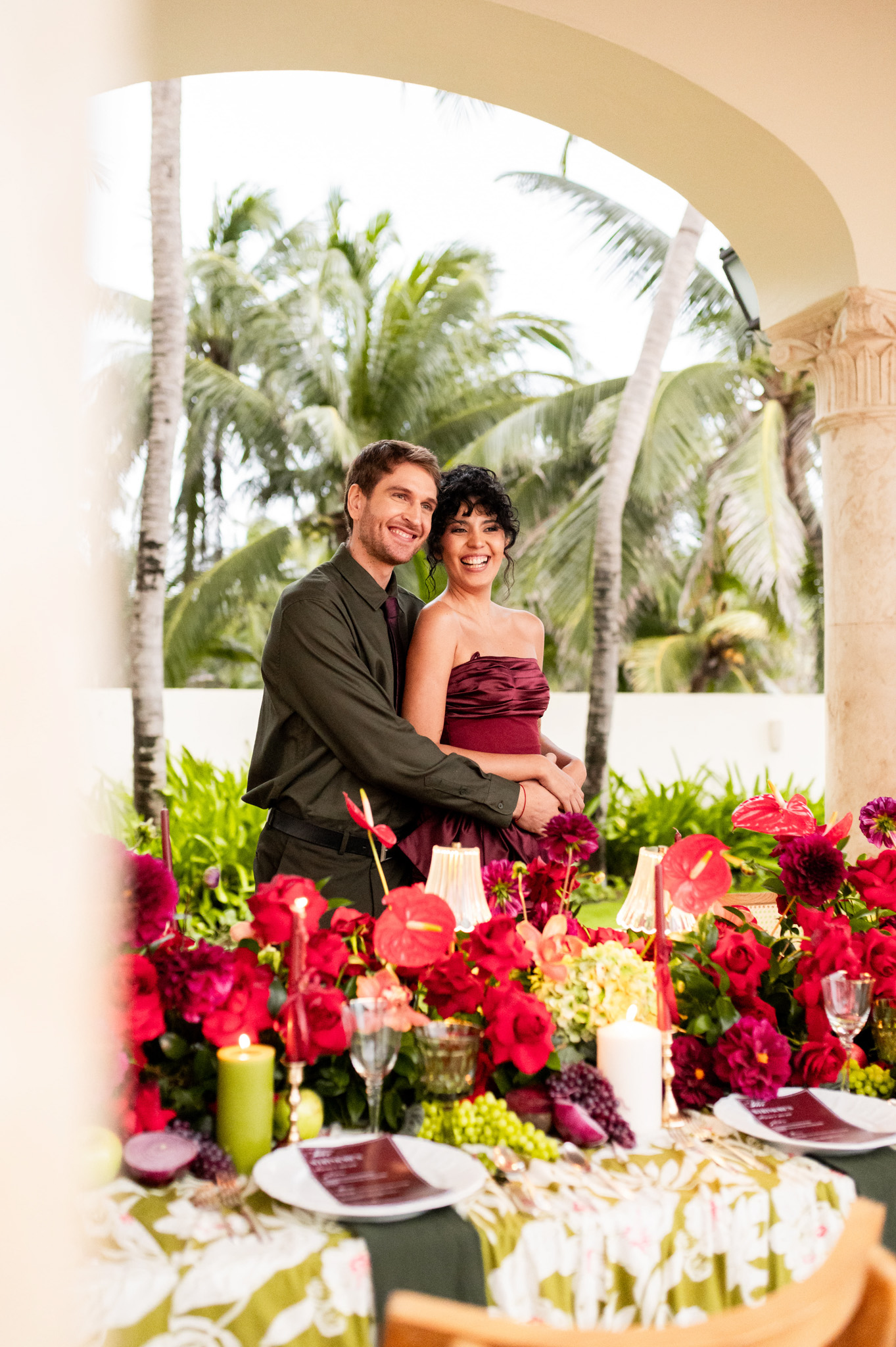A romantic wedding at Villa La Joya that reimagined the ceremony experience with a timeless, almost Shakespearean twist the couple exchanged vows from the villa's second-story balcony, evoking echoes of Romeo and Juliet but with a joyful ending. Framed by cascading white drapery and overlooking their guests below, they shared their vows softly, privately, while loved ones looked upward in quiet awe. What followed was a celebration that felt like a living sculpture - sculptural florals intertwined with seasonal vegetables, edible still-life centerpieces, flowing linens, and a curated fabric-draped bar. It was wild yet refined, poetic yet grounded a wedding where architecture, intimacy, and artistry met under the coastal sky.