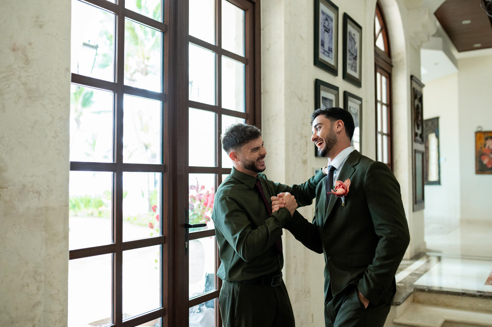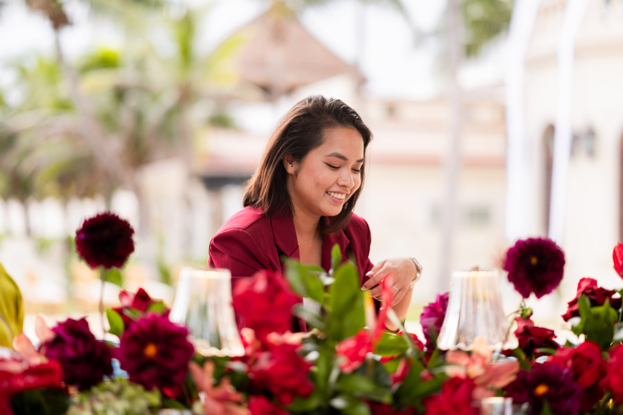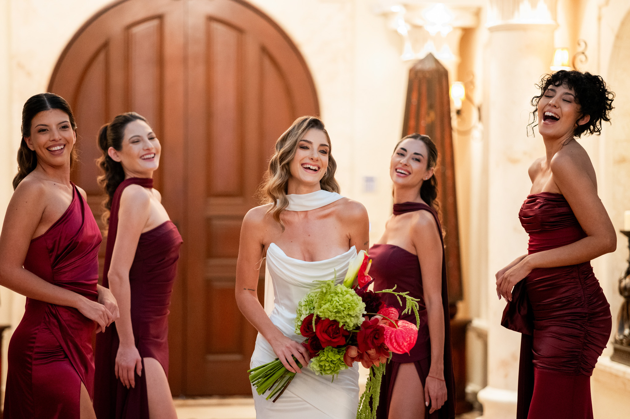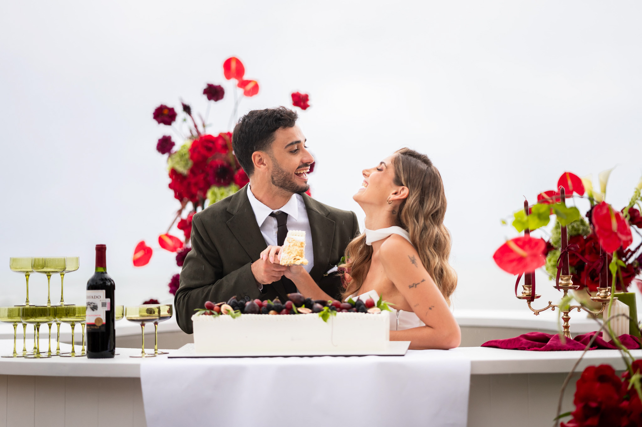 A romantic wedding at Villa La Joya that reimagined the ceremony experience with a timeless, almost Shakespearean twist the couple exchanged vows from the villa's second-story balcony, evoking echoes of Romeo and Juliet but with a joyful ending. Framed by cascading white drapery and overlooking their guests below, they shared their vows softly, privately, while loved ones looked upward in quiet awe. What followed was a celebration that felt like a living sculpture - sculptural florals intertwined with seasonal vegetables, edible still-life centerpieces, flowing linens, and a curated fabric-draped bar. It was wild yet refined, poetic yet grounded a wedding where architecture, intimacy, and artistry met under the coastal sky.