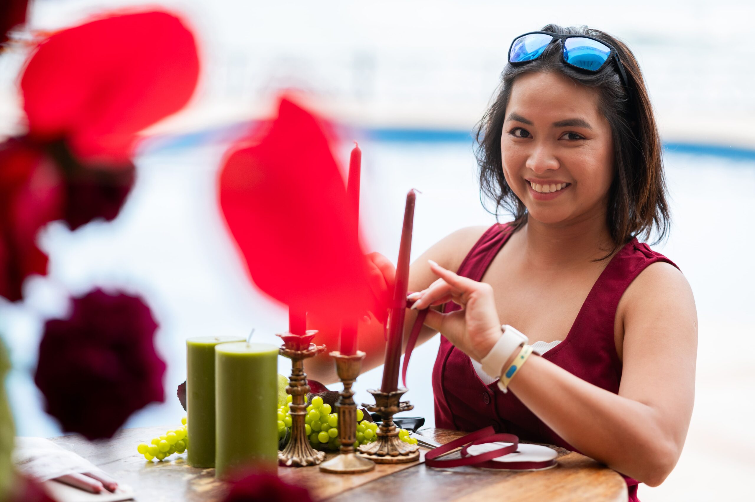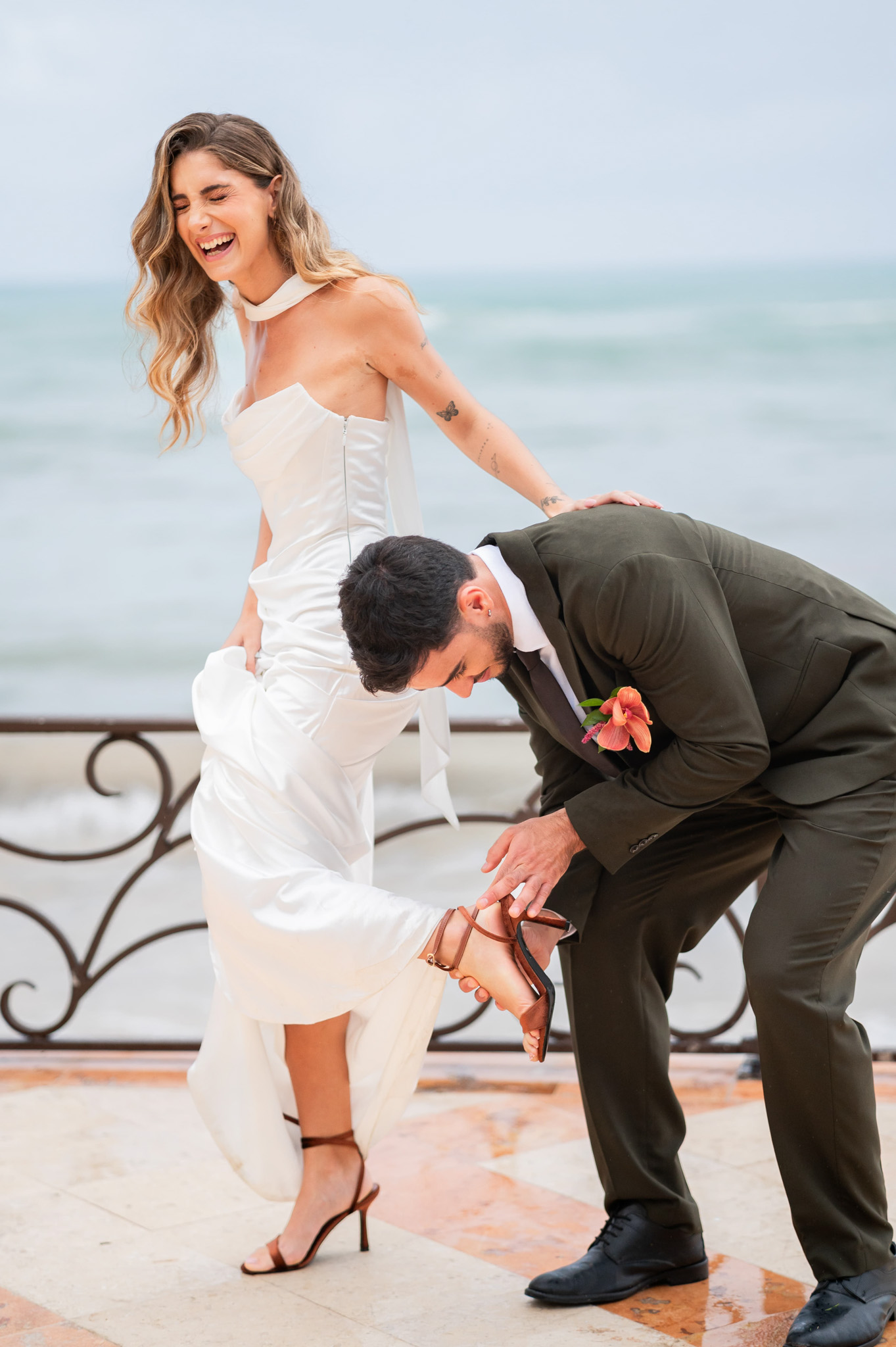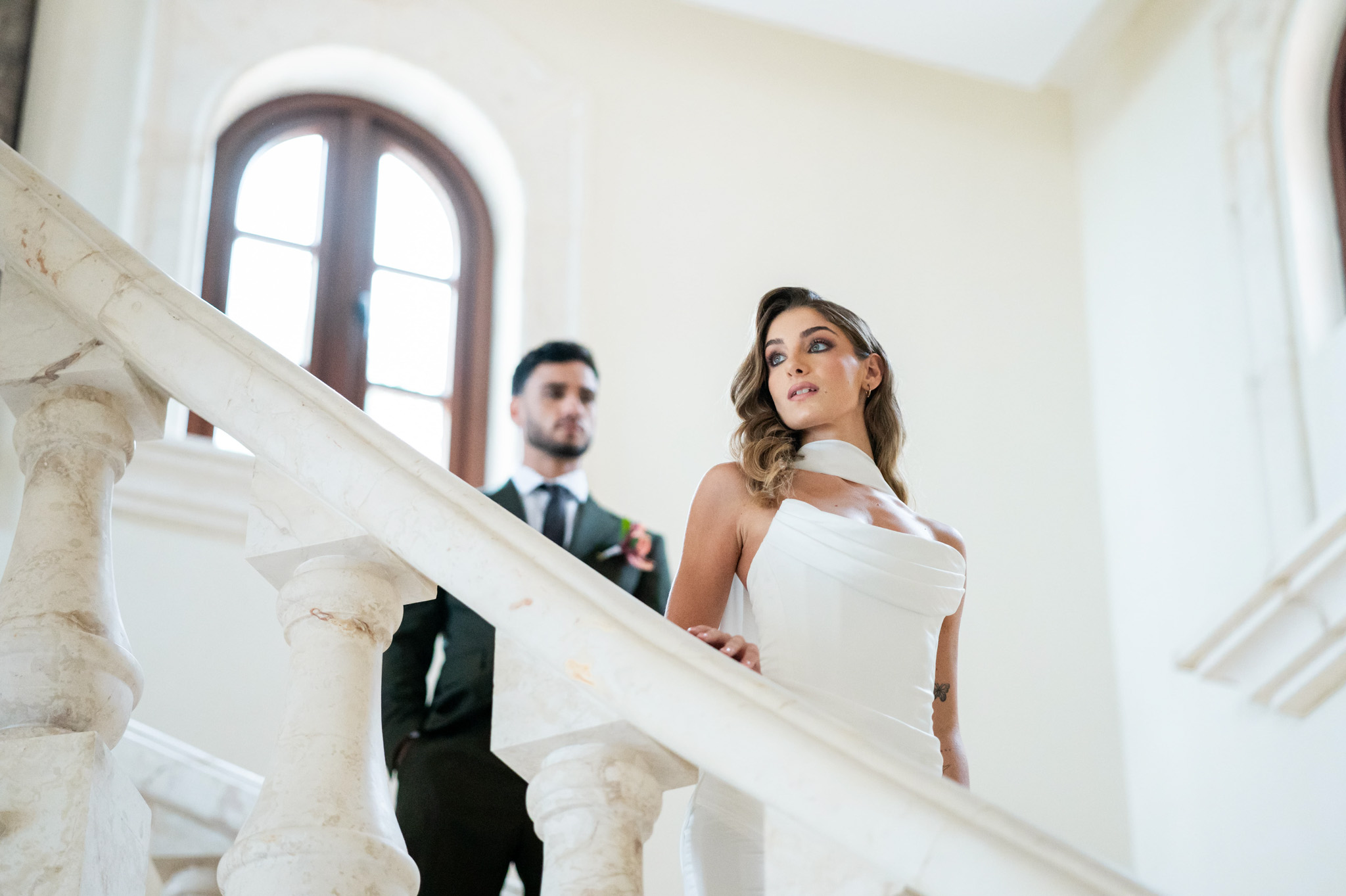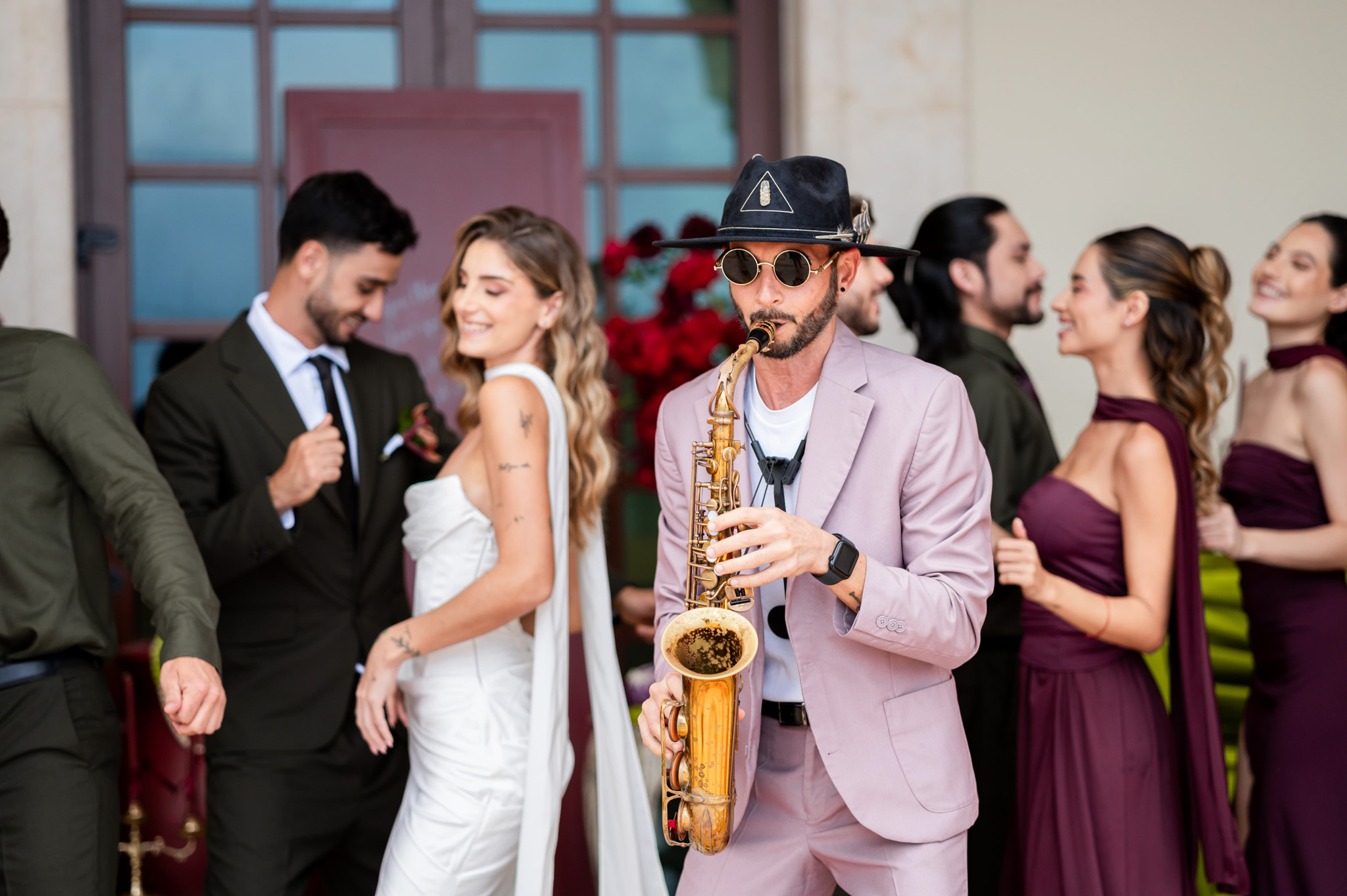 A romantic wedding at Villa La Joya that reimagined the ceremony experience with a timeless, almost Shakespearean twist the couple exchanged vows from the villa's second-story balcony, evoking echoes of Romeo and Juliet but with a joyful ending. Framed by cascading white drapery and overlooking their guests below, they shared their vows softly, privately, while loved ones looked upward in quiet awe. What followed was a celebration that felt like a living sculpture - sculptural florals intertwined with seasonal vegetables, edible still-life centerpieces, flowing linens, and a curated fabric-draped bar. It was wild yet refined, poetic yet grounded a wedding where architecture, intimacy, and artistry met under the coastal sky.